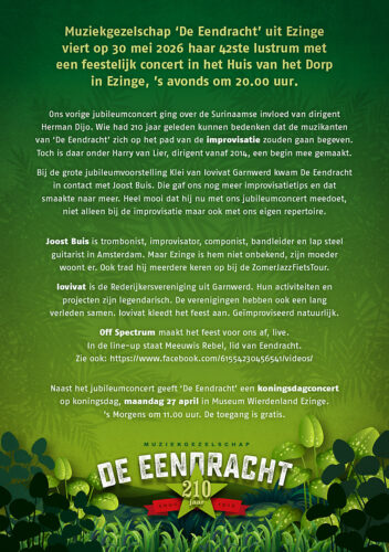 30 mei – Jubileumconcert Huis van het Dorp Ezinge – 20.00 uur